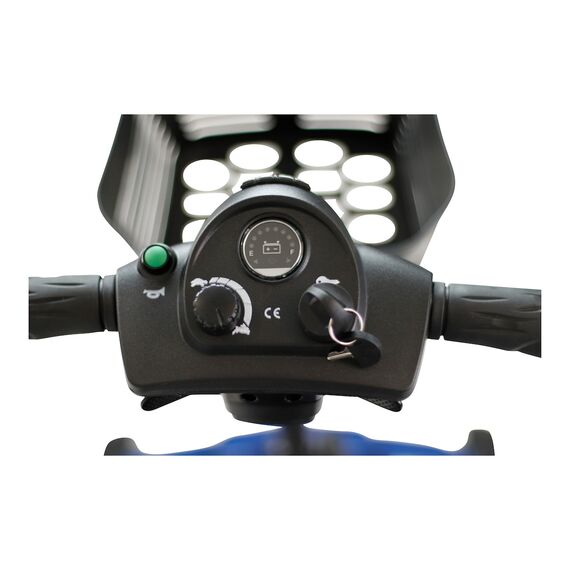 - Einfach einstellbare Lenksäule, Cockpit mit Akkustandsanzeige und Geschwindigkeitsregler