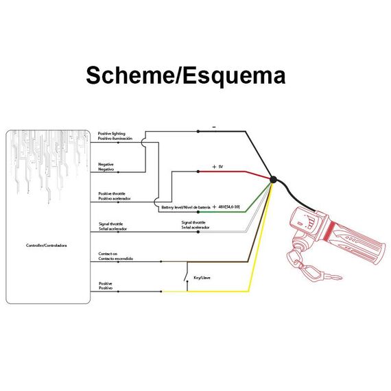 Gasgriff mit Batterieanzeige (48V) und Schlüssel - SM Stecker