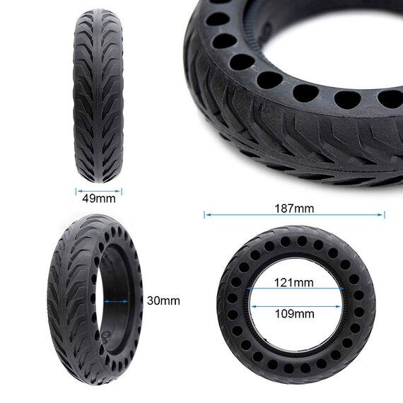 Neue verbesserte Version mit einer höheren Schlagabsorption, die die perforierte Vollrad von 8x2 Zoll umfasst. Installation Vollrad: Die Felge mit Fett oder ersatzweise Vaseline einreiben. In einigen sehr kalten Gebieten wird empfohlen, das Reifen zu erwärmen, um die Installation zu erleichtern. Verwenden Sie die Löcher, um den Schraubendreher in diese Löcher zu stecken. Kompatibel mit ETWOW.