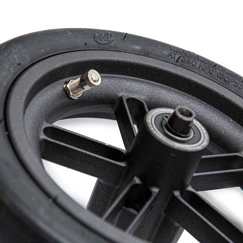 Mit einem Durchmesser von 6,1 Zoll und einer Felgenbreite von 34 mm ist die Montage einfach und in wenigen Minuten erledigt. So können Sie die Sicherheit Ihres Rollers verbessern und eine sorgenfreie Fahrt genießen. Eigenschaften: Achslager: 6001RS. Kompatibel mit PVR 40-Ventilen. Im Lieferumfang enthalten: Felge, Schlauch, Reifen und Lager.